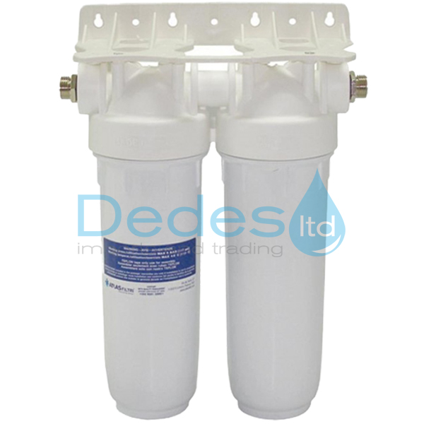 ΦΙΛΤΡΟ ΝΕΡΟΥ DP-DUO 10" ΔΙΠΛΟ ATLAS ΚΑΤΩ ΤΟΥ ΠΑΓΚΟΥ ΛΕΥΚΟ 10bar 1/2" ΠΛΗΡΗΣ ΜΕ ΒΑΣΗ ΚΛΕΙΔΙ 2ΜΑΣΤΟΥΣ