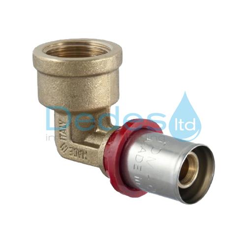 ΓΩΝΙΑ ΠΡΕΣΑΡΙΣΤΗ ΘΗΛΥΚΗ 3/4" x Φ26 x 3,0 mm ΟΡΕΙΧΑΛΚΙΝΗ ΜΕ ΚΥΑΘΙΟ ΙΝΟΧ 10 BAR +90˚C UΝΙ ΙSΟ 7/1 ΙΤΑΛ